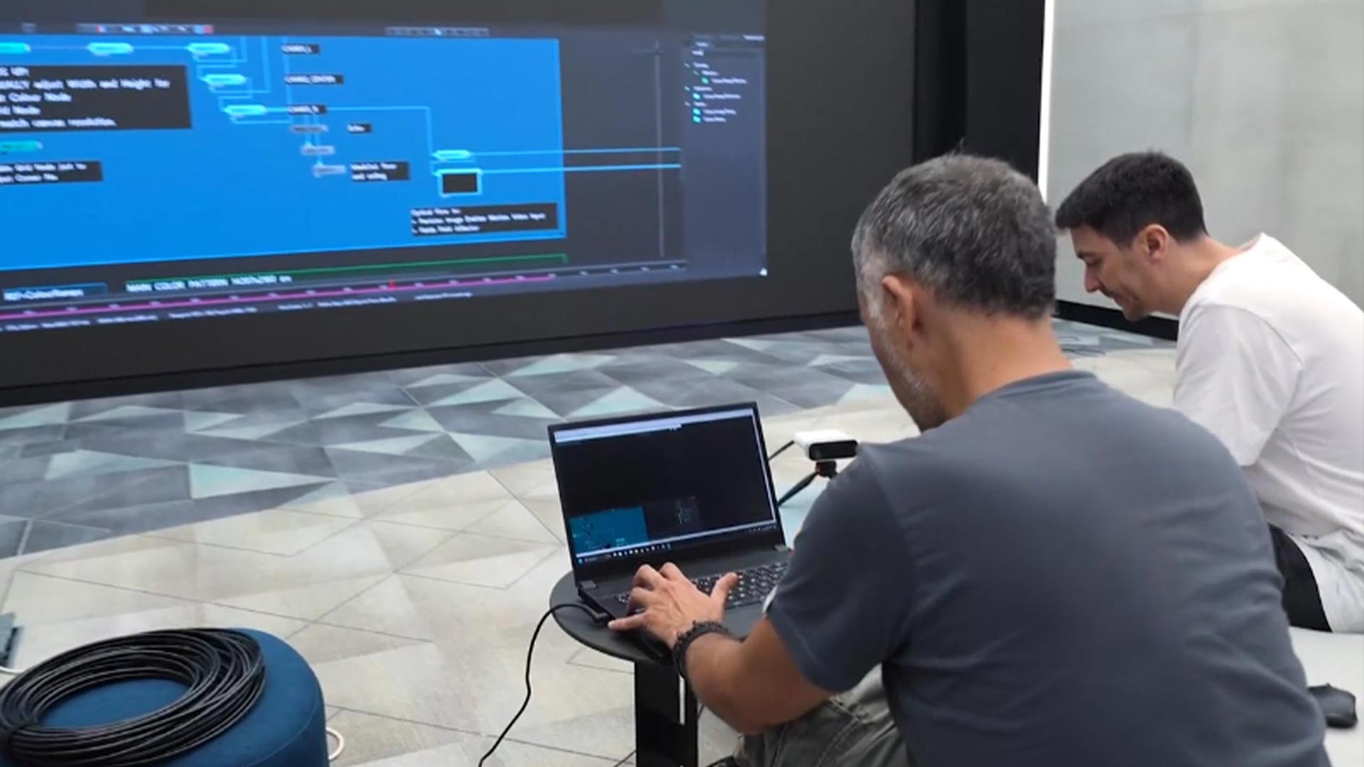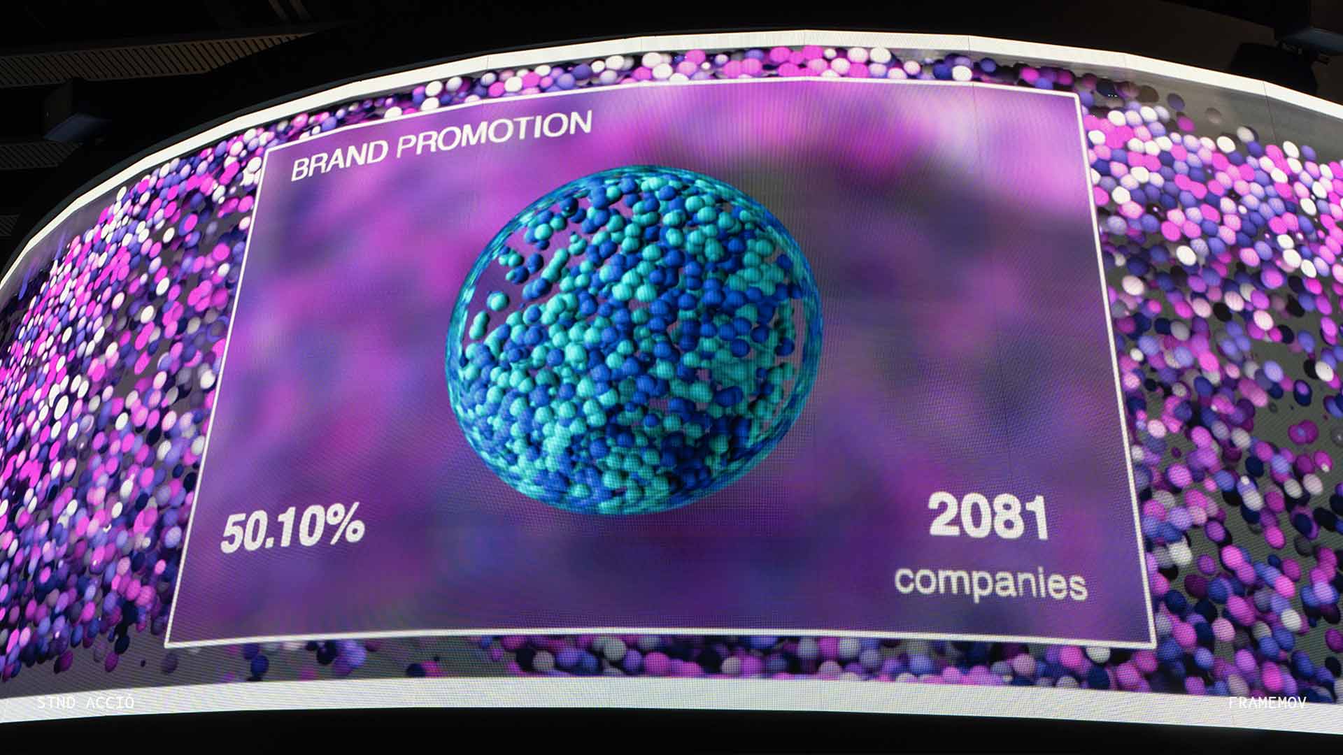 The visualizations were fed by a database with information from 4,161 companies in the sector, represented as particles on a curved LED screen. Each interaction modified the visual composition instantly using Notch VFX, turning the information into an immersive and dynamic experience.