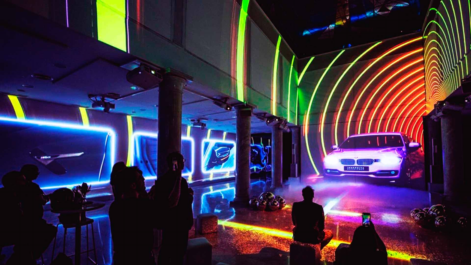 A series of visual tours that covered different themes and sectors, from space landscapes with planets and astronauts, to tropical environments or art galleries. We generated immersive environments projected on all surfaces in space, immersing the audience in visual worlds designed to captivate.
