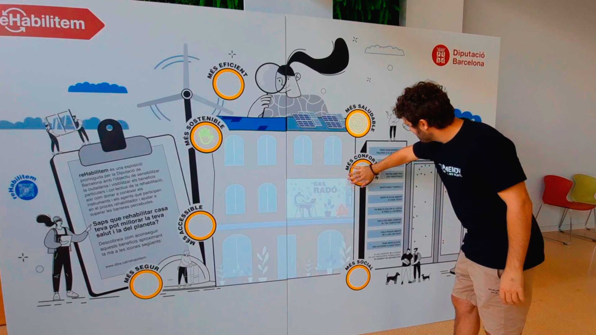 The content of the exhibition focuses on explaining how citizens can be helped to overcome the perceived barriers of bureaucracy in getting involved in a renovation project, with positive messages and clear and accessible information on how to recover this work and support from professionals in the sector and public administrations.
